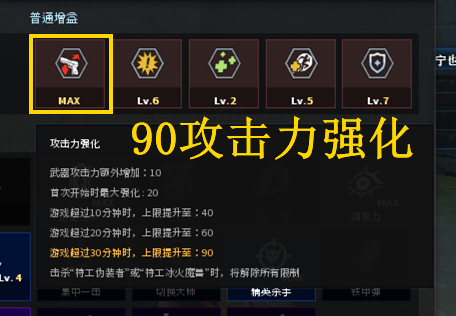 另外就是在游戏中的属性增益“攻击力强化”了,升满90个攻击力强化之后可以巨幅提升输出能力,横扫新图各大BOSS,所向披靡。