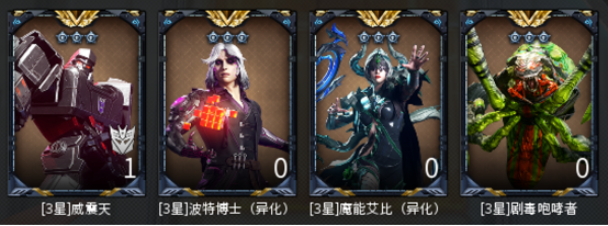 3.地下研究室召唤BOSS概览:威震天&波特博士(异化)&魔能艾比(异化)&剧毒咆哮者(异化)。