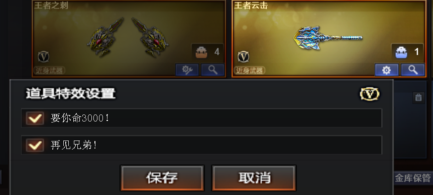 PS:“王者云击”的“再见兄弟”和“要你命3000”特殊功能均需要进行王者武器属性激活才能拥有,但可手动选择开启或关闭。