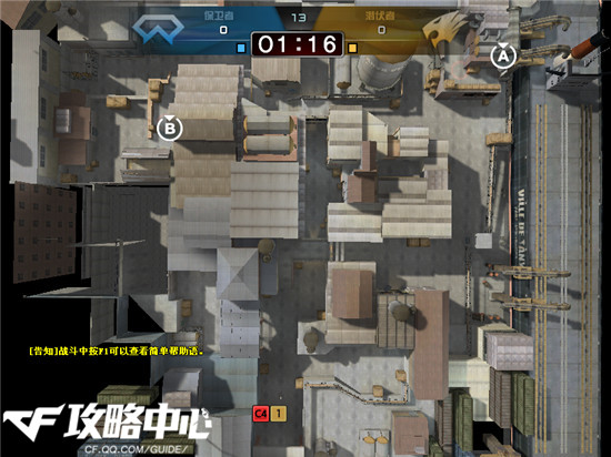 上面的图片已经把地图中间区域的名称已经标出,各位CFer们注意我下面将要出现的点位名称,自动跟上图对照。首先,港口这张地图跟异域小镇类似,怎么个类似呢?!首先他们地图都比较大,这是第一点。其次,A和B都是要经过保卫者家,并且距离不是非常的近但也不是很远。最后,路口的错综复杂,都跟异域小镇有着非常大的相似点。而不同点在于这张地图的中路构造与A、B爆破点的设计非常的独具匠心,所以说这张地图还是非常有意思的。