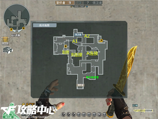 所以中路的牵制就成了潜伏者最最重要的战术核心。因为当把A连接和B房内占住后,然后利用烟雾和闪光造成攻击某一点的假象,而其他的队员攻击另外一点,并且这名骚扰的队员并不能立刻拉出来跟保卫者对枪,而是让保卫者时刻感觉到你的存在,让他无法立刻分身去支援其他的队员。或者你直接转移位置,在他们回防的路上出其不意的打掉他们。