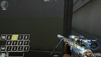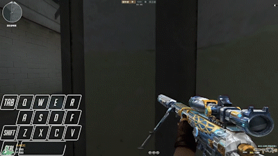 无论是左侧贴墙还是右侧贴墙原理都是一样的,出门的时候踩着门槛然后跳蹲即可上边墙。但是实战中推荐大家用斜箱跳蹲的方式,因为斜向跳蹲的时候你的脸是朝向通道的,更容易进行瞄准。