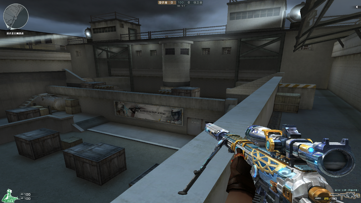 对面那一边就不一样了,主要还是打通道内的,因为通道是主战场,在别人眼前的墙上待着很危险,优先打危险的打一枪就走千万别贪心。主要打击的是刚上来通道却还在矮墙后的敌人,还有对面复活点、对面平台已经对角楼梯,在这边的时候即使下面有人也别想着打了,优先解决眼前的。