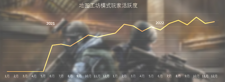 根据非官方粗略统计,地图工坊从2021年开始至今玩家活跃度的变化有一个很大的起伏,同时,地图工坊也已作为目前最主流的娱乐模式之一。