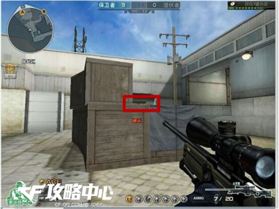 如图:“A包防守有二个人防守以及侦查敌人想打A时加以重防。现在的玩家都没有卡点,而被地方占领。很多人都喜欢在二楼的楼梯上侦查敌人,我建议这个点位最好不要侦查敌人,因为敌人可以在潜伏的A门口下,拿狙击击杀你。从而失去自己的机会。”