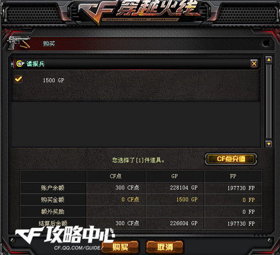 等下,差点忘记告诉玩家朋友,谍报兵卡可以在游戏商城购买喔!而且是GP,免费有没有?