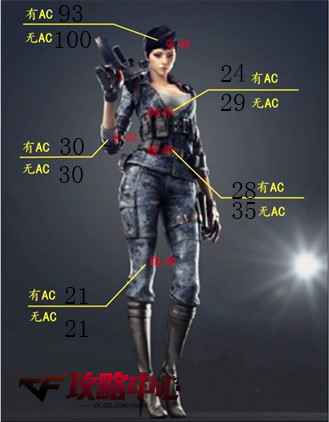 从C7A2的测试结果来看,在无AC的情况下C7A2能够做到一枪爆头,在有AC的保护下击中头部只能产生93HP的伤害,击中胸部在无AC时产生29HP的伤害,有AC时产生24HP的伤害,击中腹部在无AC时产生35HP的伤害,有AC时产生28HP的伤害,击中手部和腿部分别产生30HP和21HP的伤害。从以上数据来看C7A2的杀伤力极强。