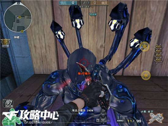 我们再来看看修罗刃对僵尸的伤害,(这里我们分别用修罗刀的两种不同的攻击方式来猛击终结者的头部来达到最小攻击加成时的最大伤害)