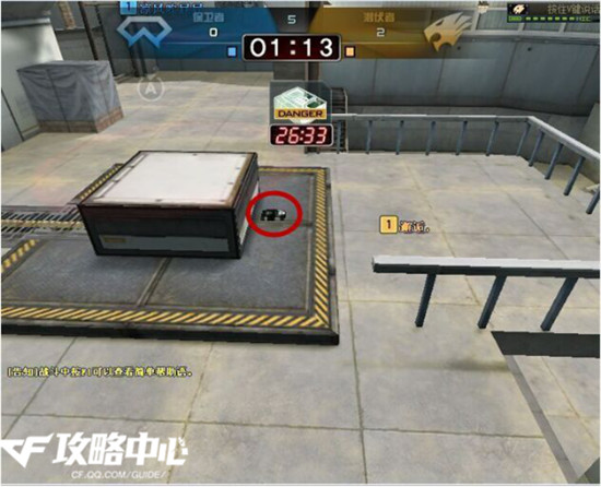 如图:“该下包点位有很大优势,也比较容易看到敌人拆包。敌人也不会特意搜这个点位。建议每隔2-3秒时间看出来看一下。”