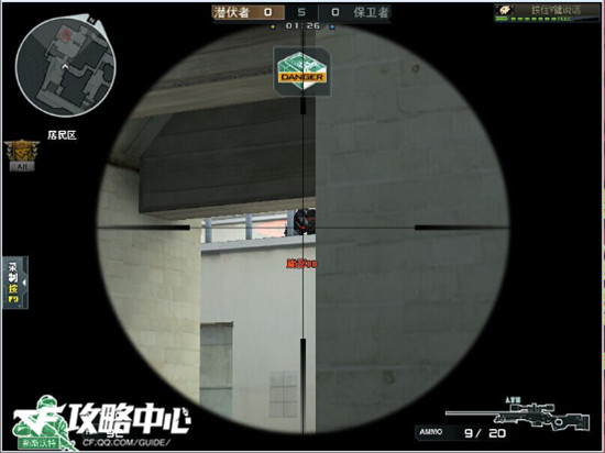 如图:“成功安放C4后,跑到桥上。保卫者在拆包的时候会暴露自身目标,潜伏者可以在远处守株待兔,建议使用狙击。”