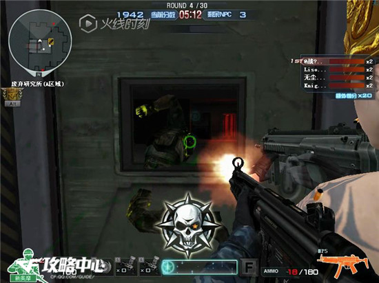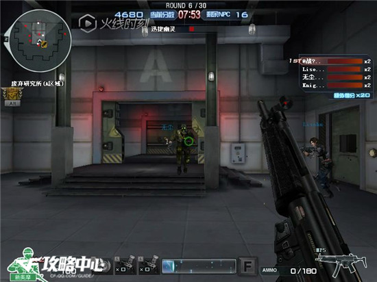 首先我们玩家一入场,这时玩家们都在一个封闭的房间内,根据背景故事的介绍,这时我们是在固守待援,外部支援正在努力为我们打开求生之路,这时我们所处的场景为废弃研究所A区域,还有一点与之前介绍过的挑战模式地图不同的是,在绝命之谷这张地图中,我们玩家的武器不是自带的,需要从补给箱中拾取,这一阶段XM1014和MP5都是不错的武器。