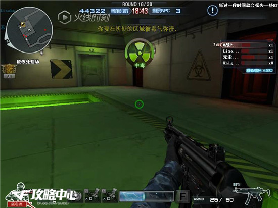 首先我们玩家一入场,这时玩家们都在一个封闭的房间内,根据背景故事的介绍,这时我们是在固守待援,外部支援正在努力为我们打开求生之路,这时我们所处的场景为废弃研究所A区域,还有一点与之前介绍过的挑战模式地图不同的是,在绝命之谷这张地图中,我们玩家的武器不是自带的,需要从补给箱中拾取,这一阶段XM1014和MP5都是不错的武器。
