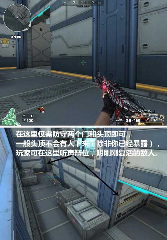 点位分析:这个点相对比较简单,这个点仅需注意两扇门附近是否有人复活即可,随后玩家便可听声辩位去击杀敌人,也不必担心被人打背身。但值得注意的是,一旦你发现自己被针对了,就千万不要再次来到这个点位~