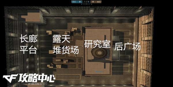 这张地图大致分为三块:长廊平台,露天堆货场、研究室。虽然这张地图不适合卡点,但并不意味着它没有卡点。长廊平台是这张地图上为数不多的卡点位之一,研究室观察台也是一个不错的卡点位。这张地图上除这两个点外,就很考验玩家的跑酷和意识了。