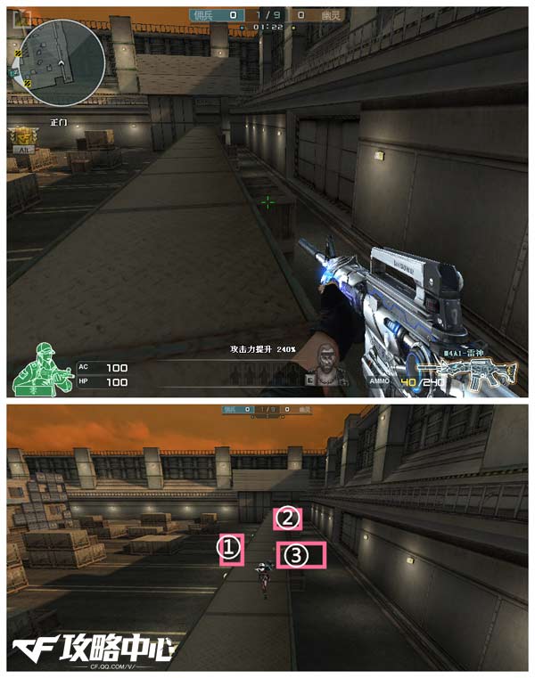 点位分析:由于这个点是整张地图上少有的防守位,很多玩家都喜欢抢这个点。小编建议大家站在图二处位置。因为你站得越靠后,越能看清楚前方动向,即使前方出现生化母体,你也有足够的时间应付。在防守时,应按照图二数字的优先顺序来击退生化,一号位置是生化攻进长廊平台的必经点,二号与三号位则是到达长廊的生化上平台的必经点,如果配合良好,这个点将会是一个刷分位。