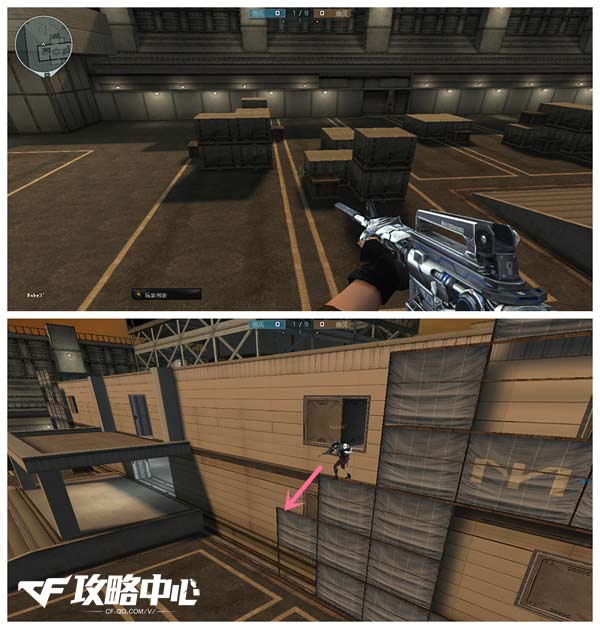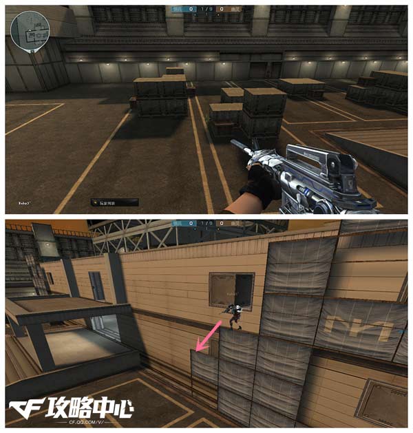 点位分析:这是露天堆货场必备的技能,如果堆货场仅有几只生化,你可以尝试这样“挑逗”他们,但如果生化过多,建议大家还是不要浪,因为毕竟这几个箱子间的距离还是有些大,不能连贯地跳跃。