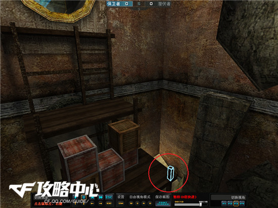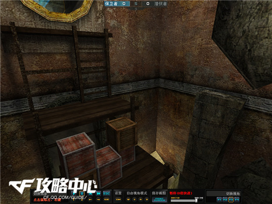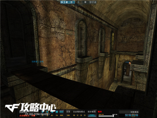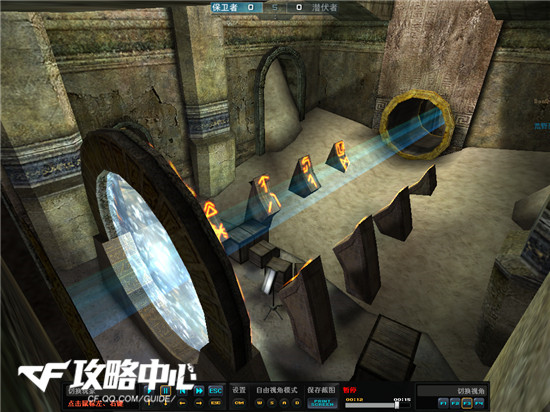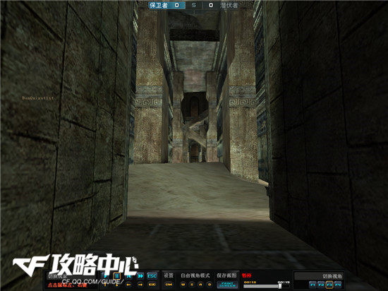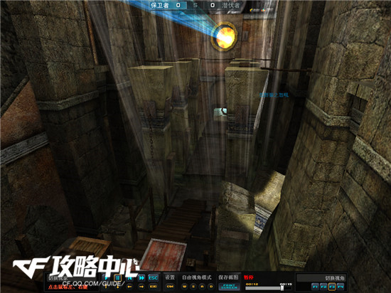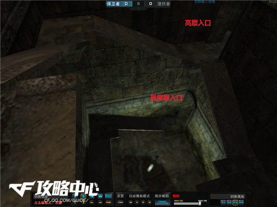 潜伏者从上层跳台穿过大厅就来到了遗迹内部的最高层,这一层可以说是通向失落遗迹的所有暗道,保卫者可以从遗迹下面爬上来,并且可以直接看得到最高层的那个出入口,如果保卫者枪法够钢或者使用狙击枪的话是可以杀死入口处的潜伏者的。