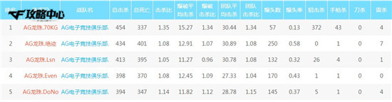 最后的最后,不得不说一下大智若愚的李思楠。之前在AG与VG比赛稿上面说到他在那场有着“准决赛”较量的比赛中,有着怎样神奇的发挥和偷人。看了这么多届CFPL,没有看懂的就是他和70,现在他们两个同处一队,非常期待他们之后的表现与发挥,同样还有这赛季回归的Even。看看下图,AG整队所有人的击杀比都在1以上,想想都觉得这支队伍是多么的可怕与强大!