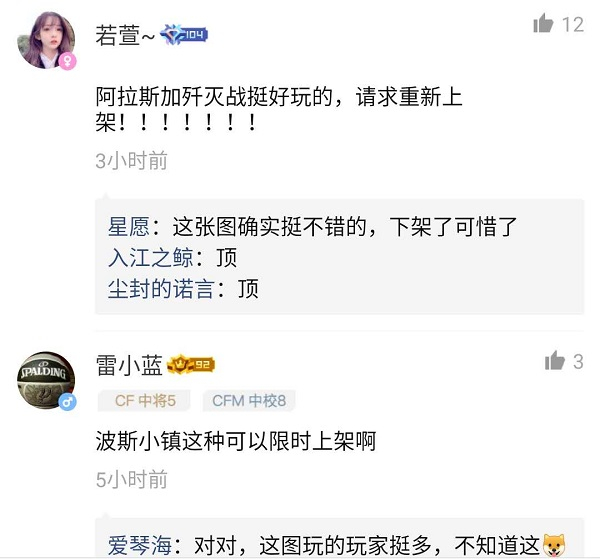 游戏地图这么多,总有一些让人喜欢让人讨厌。很多网友认为,沙海这个图占内存那么大但并没有多少人喜欢玩,为什么不下架。排位模式中,鹰眼地图太花了眼睛疼,众人希望鹰眼换港口。关于游戏地图,CFer都有很多自己的想法,一起来看看吧。
