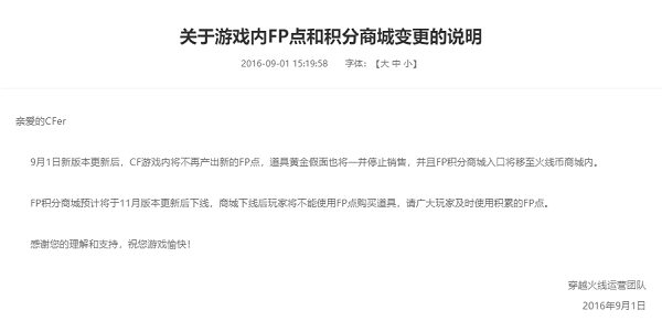 FP点商城,可以通过做任务获得FP点,然后购买FP点道具,不过后来被火线币取代了。当时可以购买蓝水晶武器、黄金假面、枪口火焰变形道具等等。