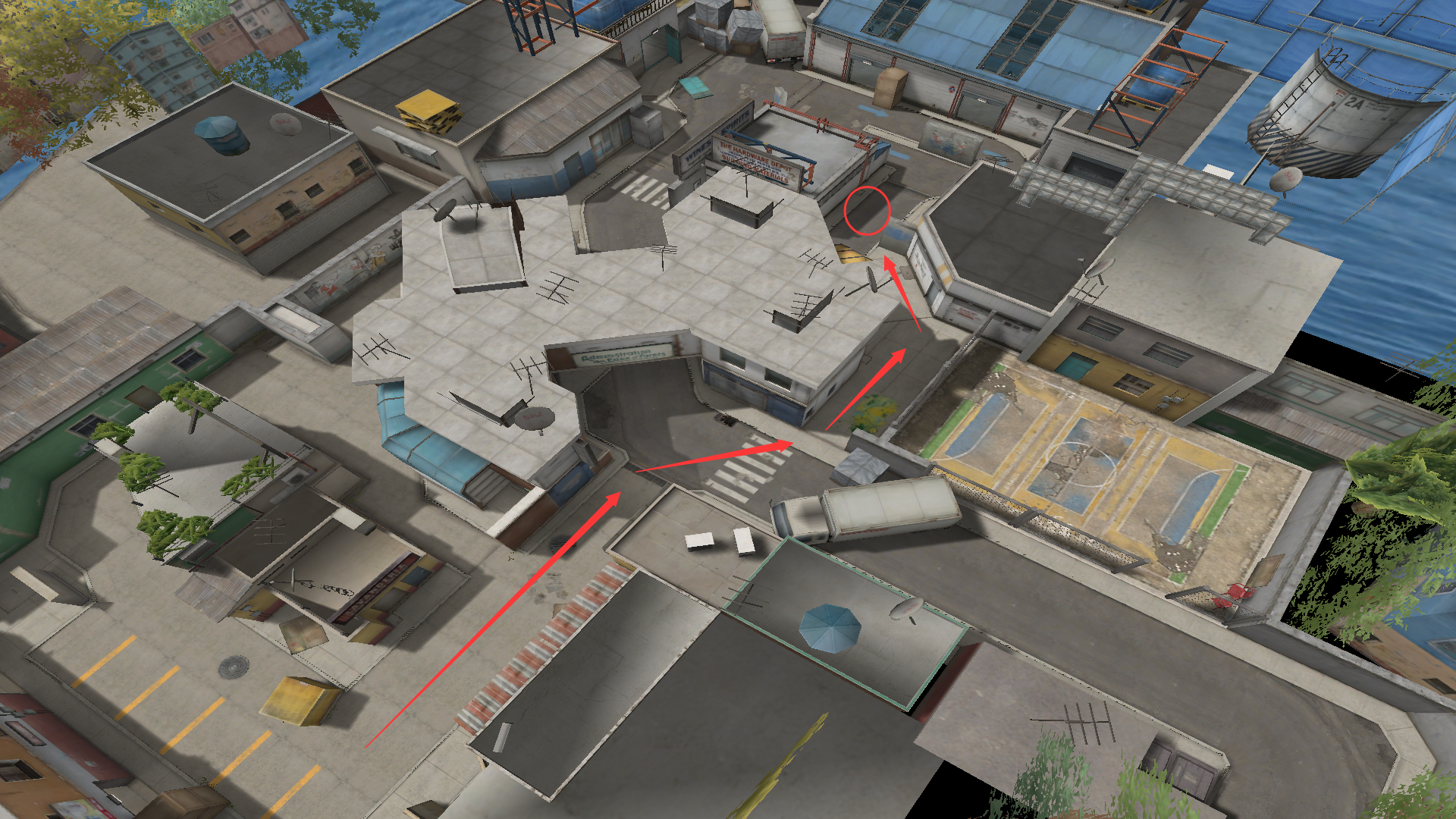 关键点在于前顶至绿皮箱点位的前方,看住从边路过来的潜伏者敌人。从这条路线上出来的敌人不得不近距离面对霰弹枪那黑洞洞的枪口。只要心不慌、手不抖,这里将成为专属于霰弹枪的“战神”点位。