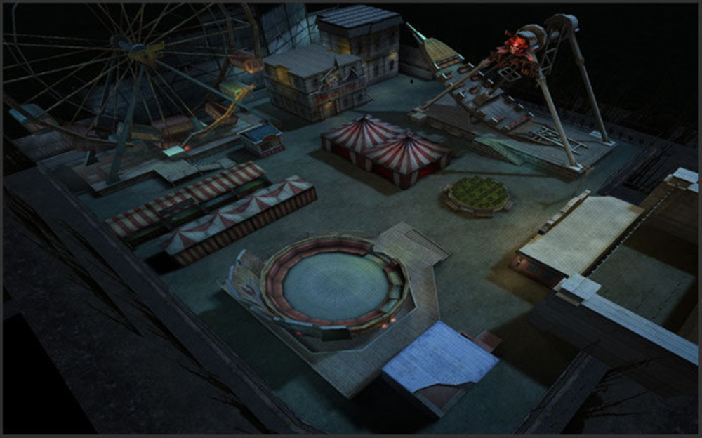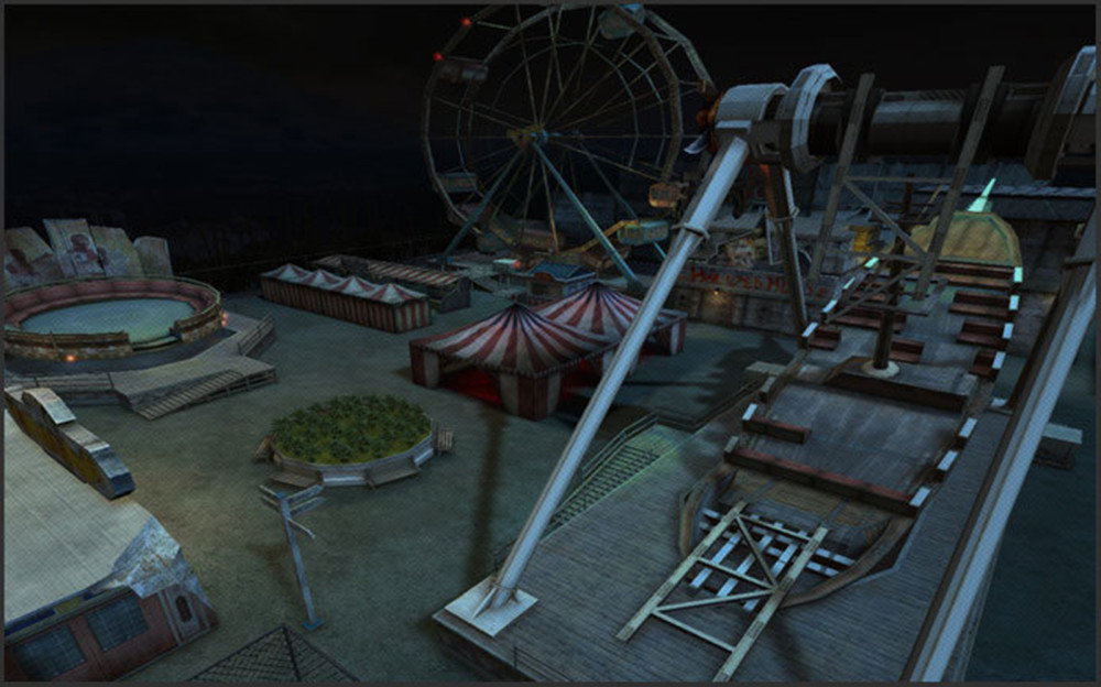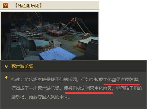 再结合另外一点,就是这张图是2012年8月伴随着穿越火线“复仇女神”版本一起推出的,而大家要知道,这个版本推出的时候,也是穿越火线《生化酒店》出来的版本,如果结合这两点一起聊的话,那么,这里的剧情就十分明显了,很有可能死亡游乐场就是在生化酒店的附近,不过,这一点,只是我个人的推测。