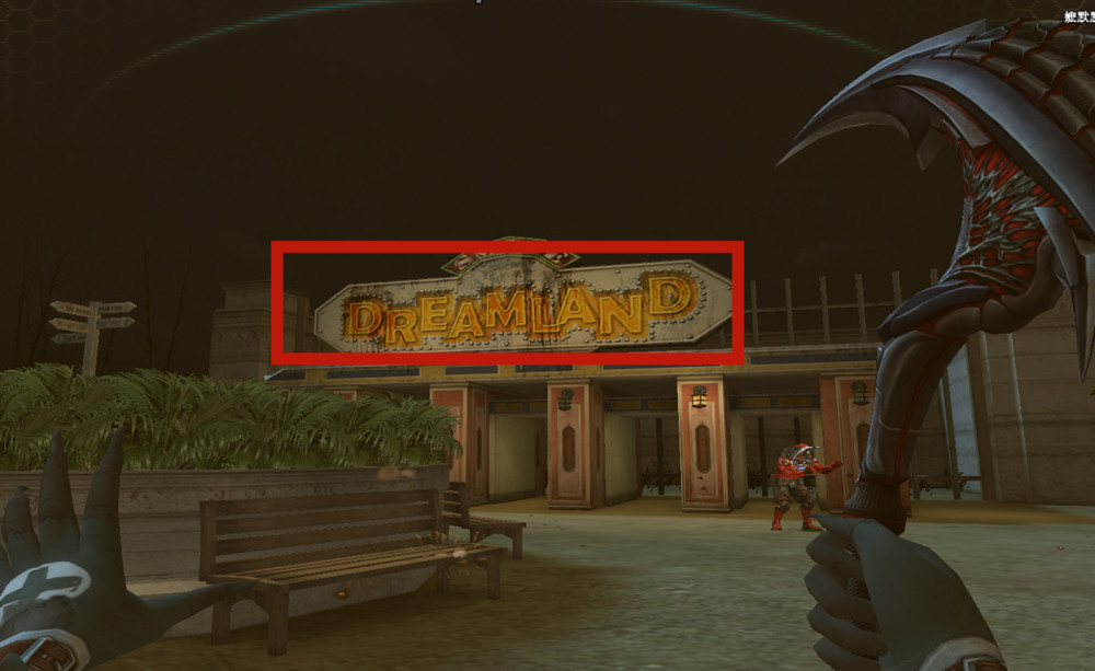 而在进来游乐场这里,有个巨幅的广告牌,上面写着“DREAMLAND”,翻译过来就是“梦想世界”,那么,我们可不可以说这个游乐场的名字就叫梦想世界呢?所以,这些点结合到一起的话,我们就可以很容易理解这里的剧情了。