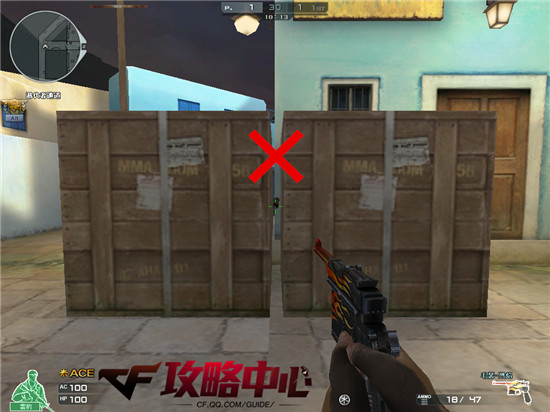 从侧面看这2个箱子是连起来的,但是走进到正面看就会发现一条缝隙,然后任何武器都是无法传统2个有间隔的箱子的。这就是游戏的设计,平衡!