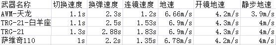 小总结:可以看到白羊座是的的确确的提升了各项性能,还保持了原有的轻便性。相信不少喜爱TRG-21的玩家都对TRG-21轻巧的枪身记忆犹新,而白羊座沿袭了这一特点,又将切枪速度提升到了与天龙同样的级别。而连镜速度和换弹速度虽然赶不上天龙,却也提升了一截。可以说作为一把狙击枪来说,白羊座甚至在一些地方有比天龙更强大的性能。这一点将在下文介绍到。当然,天龙作为英雄级AWM,这样快到爆炸的连镜速度也是令人极为惊叹的。