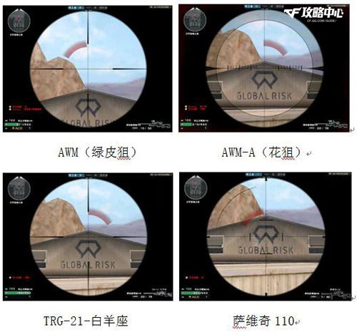 上图是我们狙击镜的预瞄点位,所有狙击枪都瞄准这一点,即“L”上面那一点进行测试。