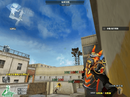 如上图所示,我们可以站在A大木箱子前,背靠木箱按S键助跑准备投掷闪光弹。