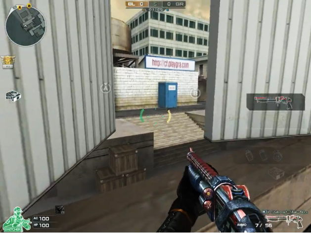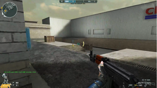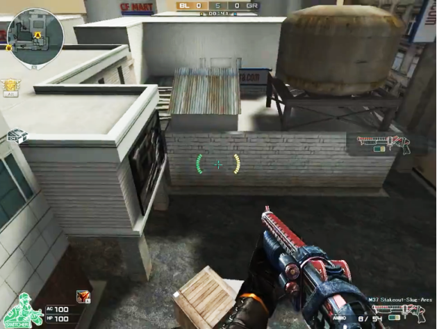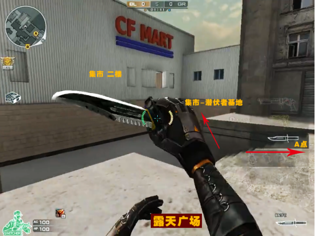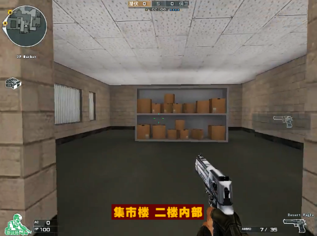 走出复活地,正前方有栋二层的CF MART集市,跑上二楼里面有很多类似快递的货架摆满物件纸箱,还有半掩半开的窗户,可以对外进行眺望及射击。