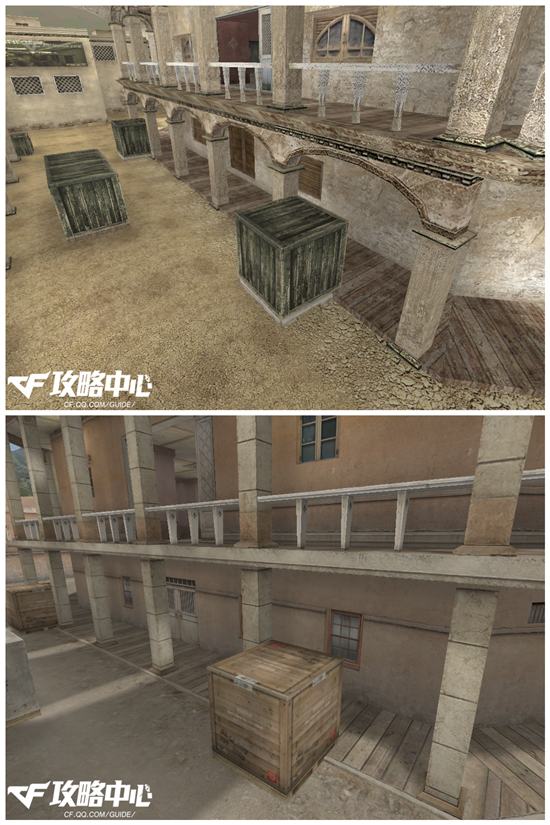在看职业比赛的时候经常发现选手们从这个箱子快速的跳到二楼,看上去特别轻松,可见职业选手不仅仅枪法好身法也非常不错。对于普通玩家来说稍微会一点点身法也能够跳上去,虽然没有职业选手那么熟练,但毕竟也是能跳上去的。但是新版本的就很难跳到二楼,很费劲才能跳到箱子上面,但是拼了老命也没跳到二楼去!对于那些喜欢利用身法玩家来说还是有影响的。