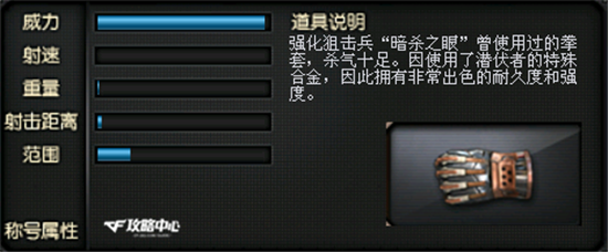 其次挑战模式中通过开启“通关宝箱”获得的武器道具也深得玩家喜欢,比如:闪光护目镜、特色手雷、各种特色的近战武器等道具。这些道具虽然是通过挑战模式获得的,但在其他模式中也能发挥自身的出色特点以及为玩家节省了购买道具的开支。今天小编为大家带来的这款特色近战武器,正是通过开启试炼挑战巨蜥宝箱所获得的—暗杀之拳;下面就请友友们随小编一同来看看吧。