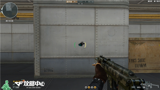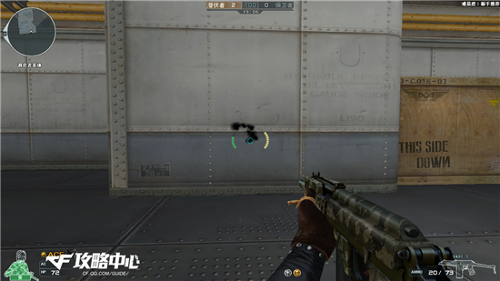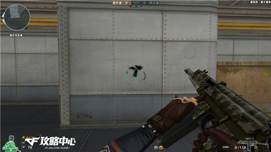 从上图可以看出是一个标准的“T”型,这对定点扫射来说是极其给力的,再来看看蹲姿扫射。
