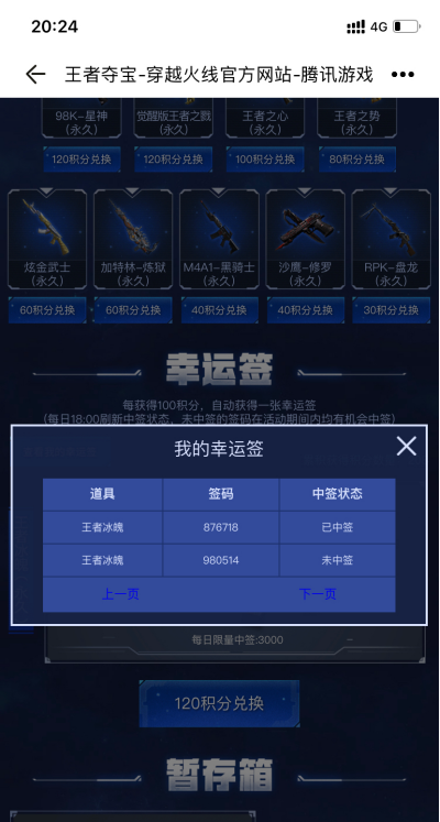 《王者夺宝》活动,“王者冰魄(永久)”终于中签到了!已经快一个礼拜,第一次喜中到了,你们的幸运签中到过吗?