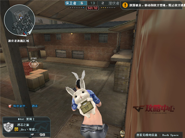 保卫者的首要工作就是保护凯恩的安全,一旦凯恩被刺杀成功,任务就失败了一大半,但是还是有一丝的希望,因为潜伏者刺杀成功还要坐着直升机逃之夭夭,如果可以半路劫杀潜伏者,任务也算是成功的。保卫者的任务就是封锁所有的入口,入口这里都有红外警报系统,一旦潜伏者触动之后,就会发出刺耳的警报声,提醒保卫者严加防范潜伏者来袭。有的时候保卫者要化被动为主动。主动出击去拦截潜伏者,这样行动效率会高很多,即使潜伏者刺杀凯恩成功,我们可以在敌方的大本营守株待兔,把潜伏者一网打尽,防止潜伏者逃脱。如果潜伏者触发了红外报警器,那么凯恩离开的时间大概是30S左右,也就是说保卫者抗住这个时间就可以取得比赛的最后胜利。