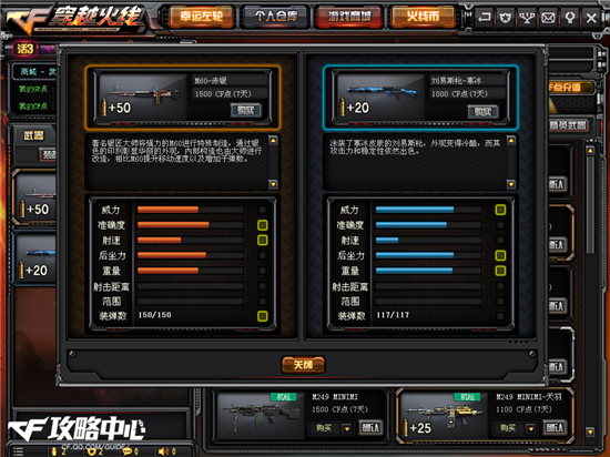 RPK同样作为元老级别的机枪,从盘龙这把英雄级武器就可看出它不一般的地位。通过二者的对比我们可以看出,它们在准确度方面是不相上下的。虽然M60-赤银的射速稍慢一些,但在威力方面则扳回一成。至于后坐力、重量和装弹数等,都是赤银稍占上风。而在与刘易斯枪-寒冰相对比时,赤银的威力就相对差一些了,但在准确度和射速方面都是胜于后者的。
