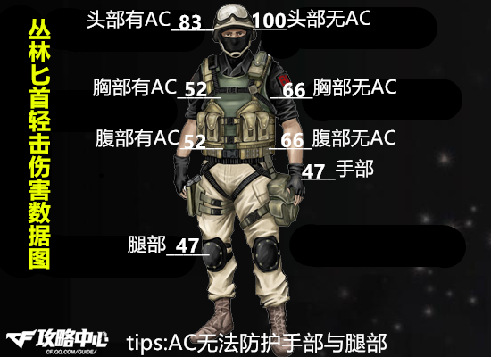 轻击的伤害也非常高,虽然比不上斧头轻击无视爆头那么高伤害!但比其它的伤害来说还是算大的,这毕竟是轻击啊!一个匕首的轻击这么高伤害真少见,还有一点值得注意!轻击胸部腹部的伤害一样,轻击手与脚伤害一样。这么巧?