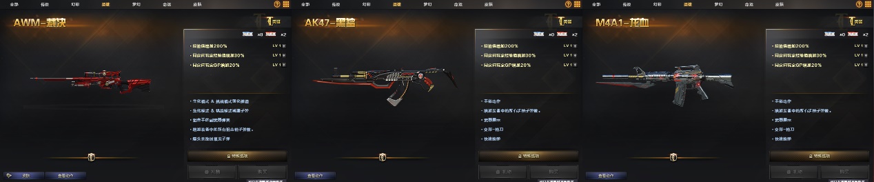 狙击枪是生化模式的强化狙击,而后两款则拥有独特的“变形-枪刃”属性,各位CFer按需选择,AWM-裁决+流光秘银皮肤,直接一步到位。