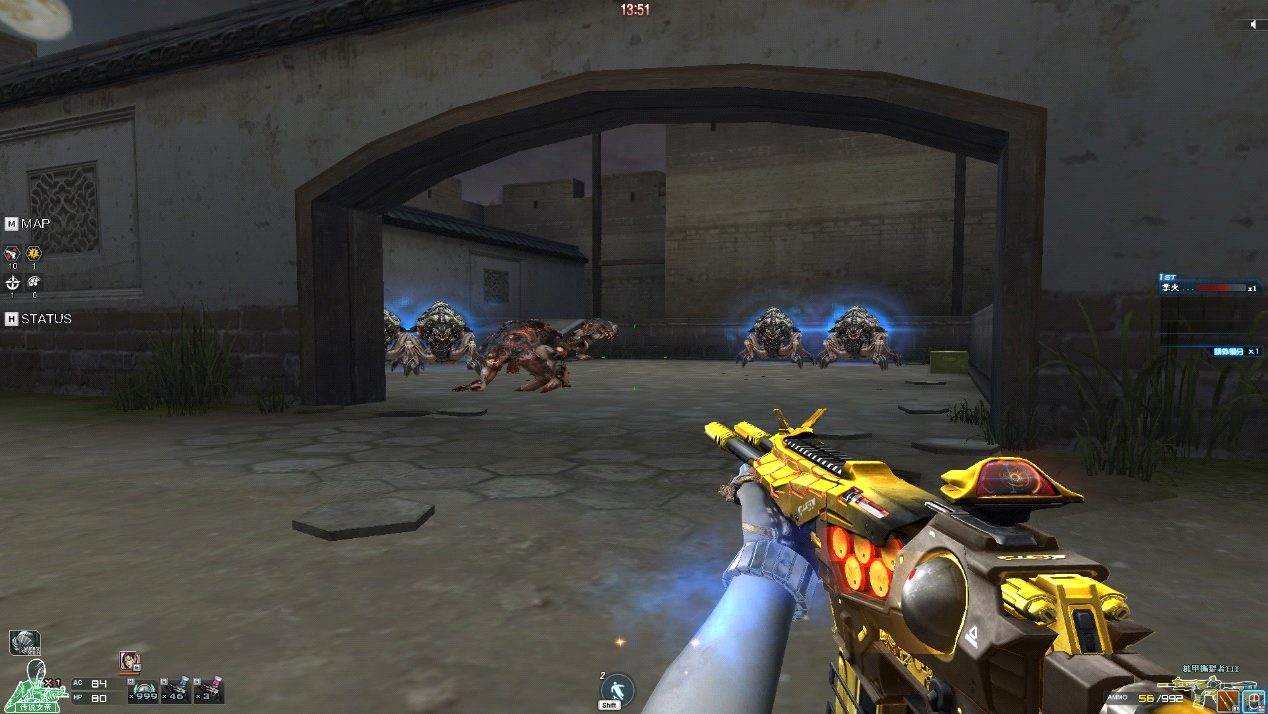 继续往右边走还有一个小院子,这里得怪物的密度比较大,适合单人消金。