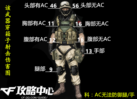 如大家所见,爆头一枪无视AC!另外玩家朋友们需要注意的是AK47-骑士射击腹部的伤害高于胸部,所以在实战过程中控枪泼射的时候可以压低一点选手泼射腹部。可以有效的击杀敌人。在无AC的情况下射击腹部的伤害高达42hp,感觉好吓人啊!