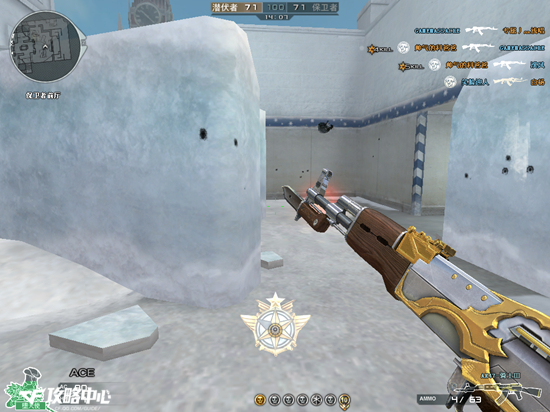 在爆破模式中AK47-骑士的表现也非常优异,比如说保卫者去A大进行防守。敌人一露头就可以在这个距离一枪爆头秒杀!接着往潜伏者家去,许多情况下潜伏者都会在复活点平台用狙击枪。利用AK47-骑士的速点优势,直接爆头千万别给狙击手开第二枪的机会!