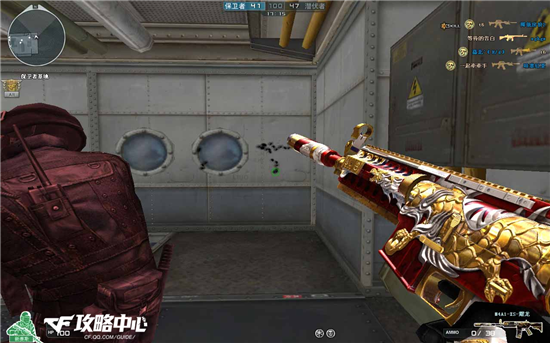 在游戏中可以看到,在中远距离的扫射中,可以看到墙上的弹道很平稳,和M4A1系列一致的是后坐力较小,扫射很稳定,这就决定了M4A1 XS 翔龙的近距离作战能力。