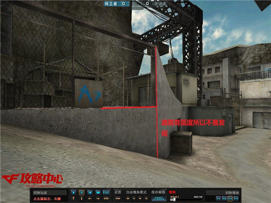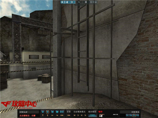 首先是A点的高台,如果成功上到高台就可以直接看到从潜伏者复活点跑向A点的潜伏者,保卫者可以携带狙击枪在A高台处狙杀潜伏者。但是要注意的是在潜伏者赶到A大转角口的时候保卫者是还没有爬到A高台的,大概是在梯子上距离A高台三分之一的地方,所以这个时候的保卫者是非常容易被潜伏者的狙击手给狙杀。所以保卫者兄弟在上高台的过程中要时不时地回头看一下潜伏者拐口处的动静