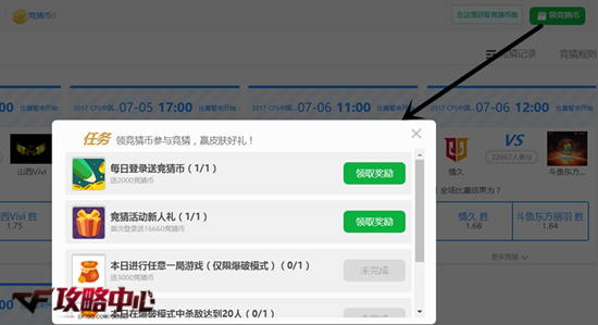 除了以上诸多福利之外,还有本次活动的重头戏——赛事竞猜!在每场比赛开始前我们都可以进行下注竞猜,可以向自己支持的队伍投入适量的竞猜币。如果竞猜正确的话,系统将在结果揭晓后自动奖励相应数量的竞猜币。当然大家也不用担心第一桶金的来源,或者是一次性将竞猜币输光后就与此无缘等问题。因为竞猜活动新人礼就有16660竞猜币,每日还可通过登录、进行一局爆破模式、在爆破杀敌20人以及游戏时长达120等任务中获取对应的竞猜币。