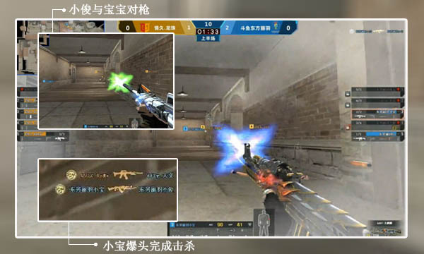前面老将TK技术让人无法质疑,来自斗鱼东方丽羽战队的新人小宝,表示强烈不服,用自己的出色手法,向观众展示吃闪光依然能TK队友的绝技。此次对手是情久战队,情久进攻A区,迅速占领A区,东方丽羽小俊和小宝从A小道回防,快速杀上A楼梯,遭遇情久强大火力压制,局势不妙,小俊在前方与情久.宝宝对枪时,后面的小宝不幸吃了对方的闪光弹,混乱之中,一阵扫射,小俊不幸成了替罪羊,一个精彩爆头小宝成功秒掉小俊,本来场面上就处于劣势,再遭此打击,结果可想而知。