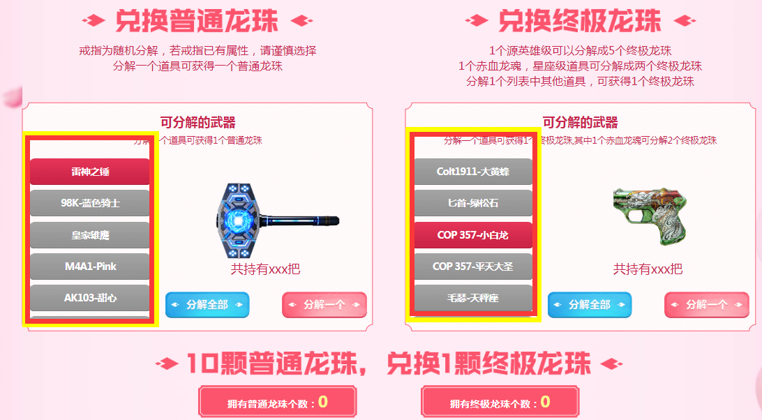 龙珠道具上新啦,你还期待哪些武器实行分解?