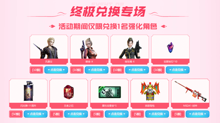此外还新增风暴女、夜玫瑰-X、京剧背包、M82A1-封神的终极龙珠兑换,错过以上奖励的同学一定要抓住机会哦~