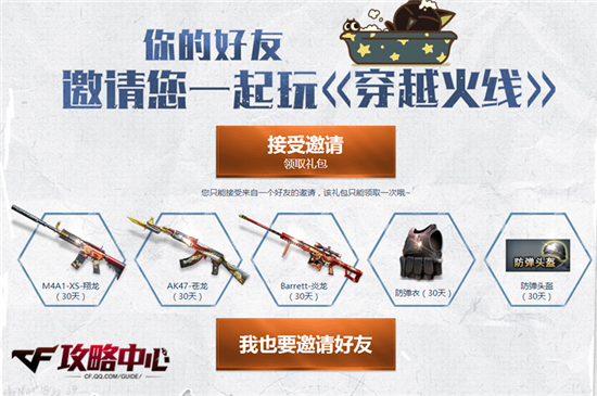 如果我们是回归玩家的话,同样也是可以把奖励拿到手软的!首先是在接受好友邀请时可以领取30天期限的M4A1-XS-翔龙、AK47-苍龙、炎龙大炮和AC套装。不仅如此,在活动页面中“我是回归玩家”中还可以领取一份由30天M4A1-SS、炎龙沙鹰、炎龙大炮和AC套装组成的大礼包。当然了,由于此处的回归礼包限于最后一次登录游戏时间在2017年6月1日之前的玩家,因此适用的玩家更为广泛。怎么样,仅仅是这60天的AC套装恐怕就让很多不属于回归玩家行列的CFer羡慕不已了吧!